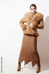 Winter clothes fashion woman in leather jacket