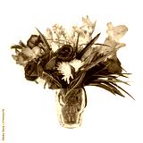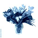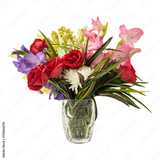 Bouquet of mixed flowers and leaves in vase isolated on transparent background