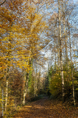 Waldweg mit Herbstlaub