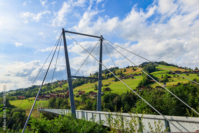 Suspension pedestrian panorama bridge over the Gummi gorge in Sigriswil, Switzerland
