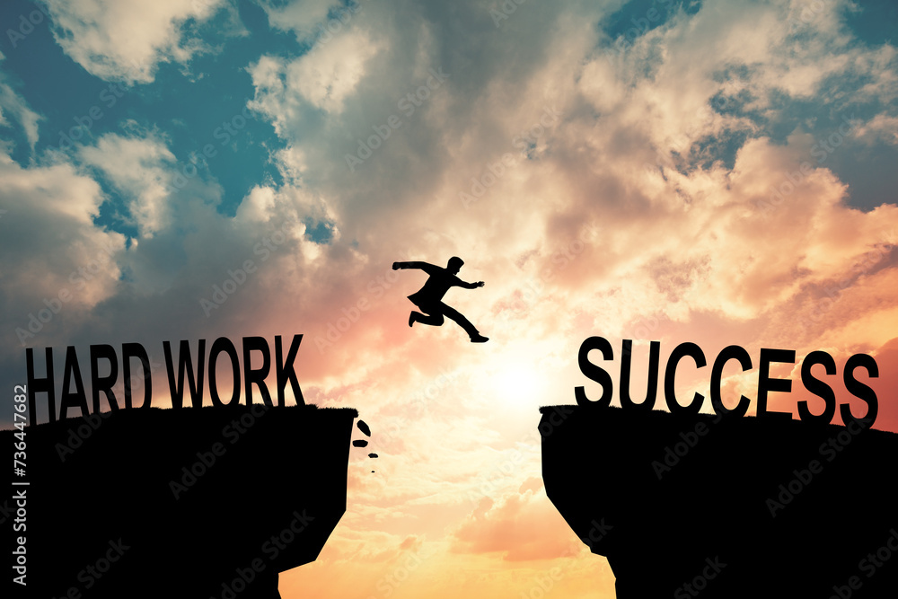 Business man jumping to next cliff with risk decision. Hard work success concept. Business strategy concept.