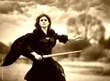 The beautiful gothic girl holds a sword in a hand