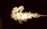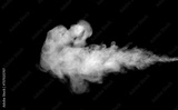 Collection of close-up shots of abstract white steam or smoke. White cloudiness from moisture spray Isolated on a black background.