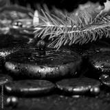 beautiful winter spa concept of zen basalt stones with drops, li