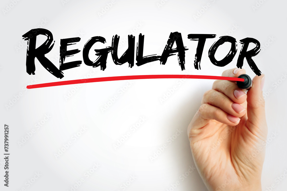 Regulator - device that controls or limits something or person that sets standards of practice, text concept background