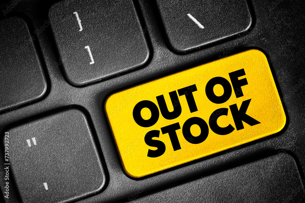Out Of Stock - unavailable for immediate sale in a shop text button on keyboard, concept background
