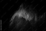 Abstract white dust on black background. Light smoke texture. Powder explosion. Splash water overlay.