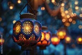 Beautiful decorative lanterns for Ramadan Kareem with bokeh background