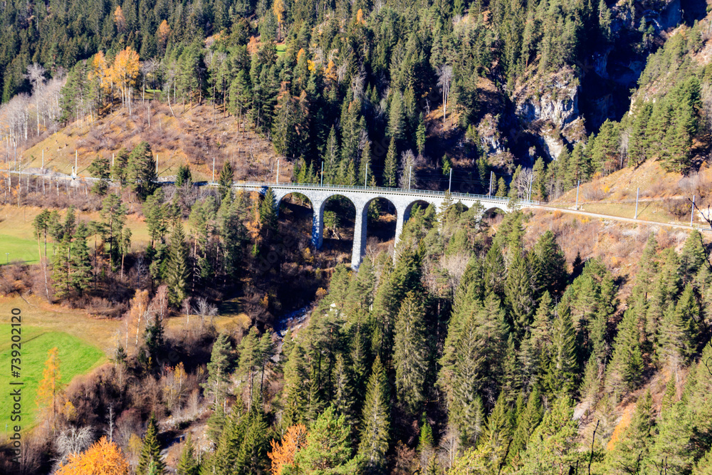 View of Landwasser Viaduct, Rhaetian railway, Graubunden in Switzerland