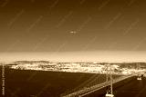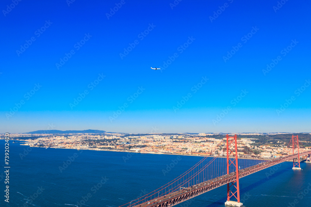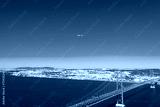 The 25th April Bridge (Ponte 25 de Abril) is a suspension bridge road-rail over the Tagus river that connects the city of Lisbon to the city of Almada. View from Almada.