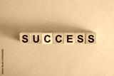 Positive Words Vocabulary concept, SUCCESS word cube wooden with Kalimba and rope roll on the wooden background, start your work day refreshed.
