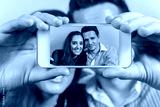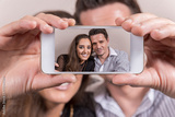 Caucasian couple taking a selfie with mobile phone.