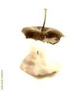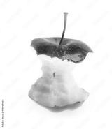 Half eaten apple on white background.