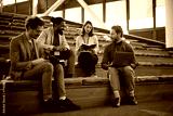 Happy black businessman talking to his colleagues while participation in education event at convention center.