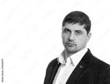 Fashion young man in black jacket over white background