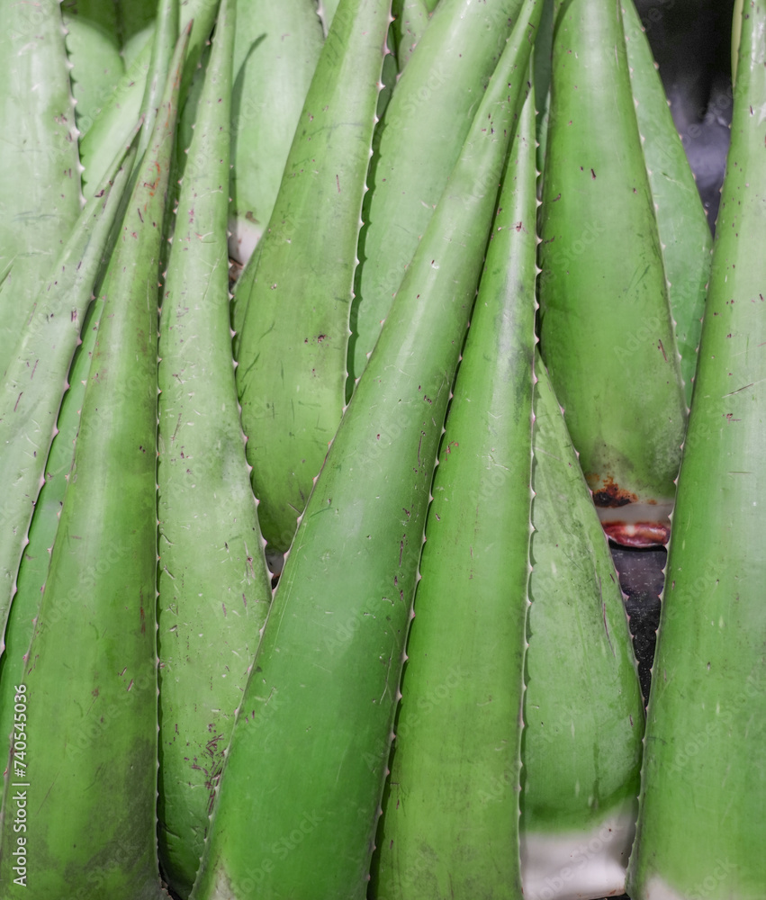 Aloe vera fresh green leaves in market