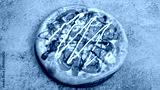 Beef pizza top view isolated