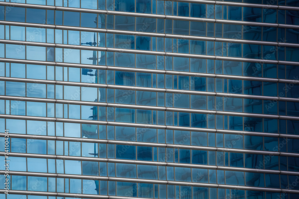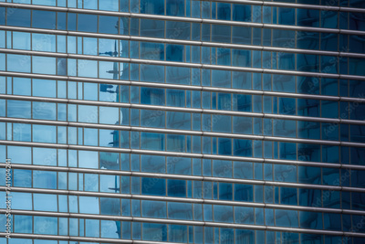 Architectural background. Fragment of building facade with blue glazing. Diagonal arrangement