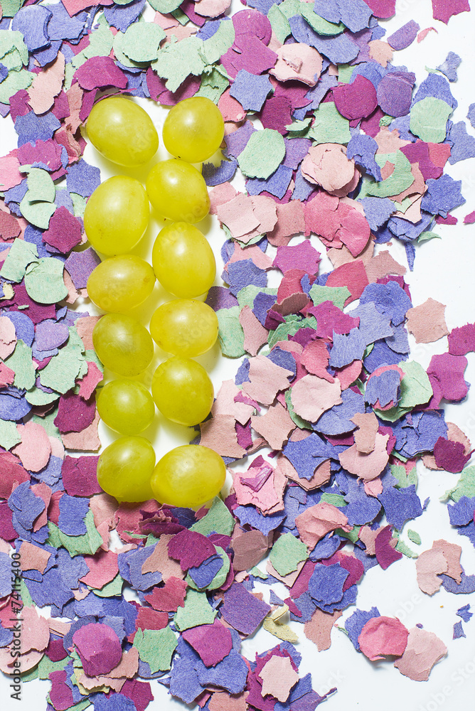 Twelve grapes and confetti for New Year's holiday