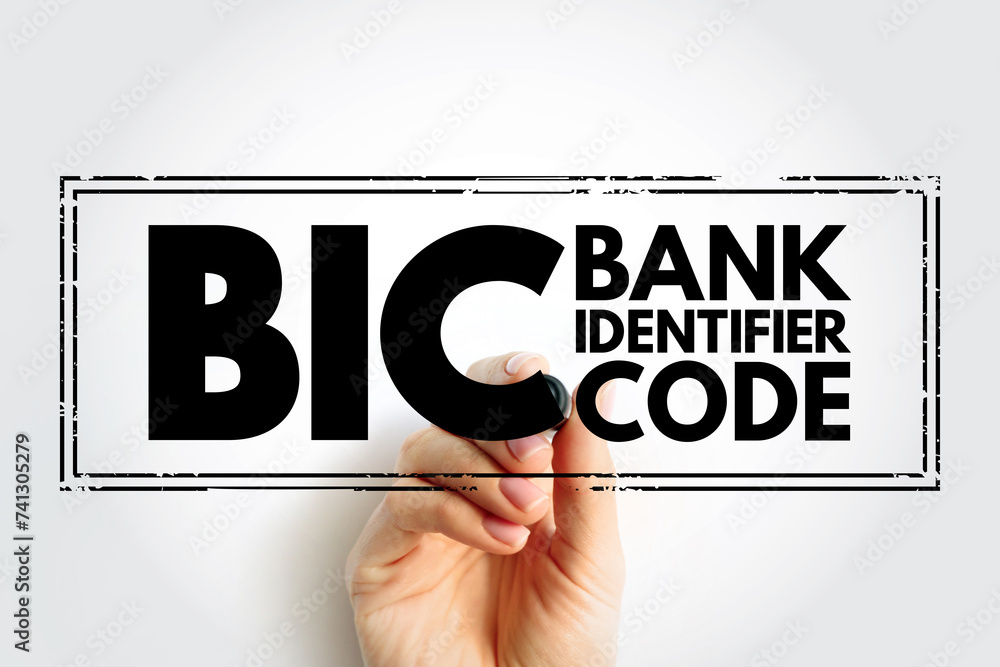 BIC Bank Identifier Code - SWIFT Address assigned to a bank in order to send automated payments quickly and accurately, acronym text concept stamp