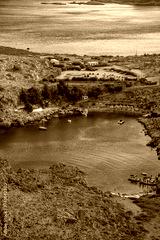 Aerial view on Saint Paul's bay in Lindos, Rhodes, Greece.