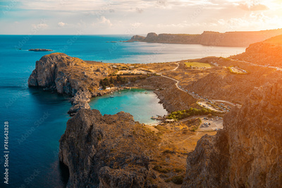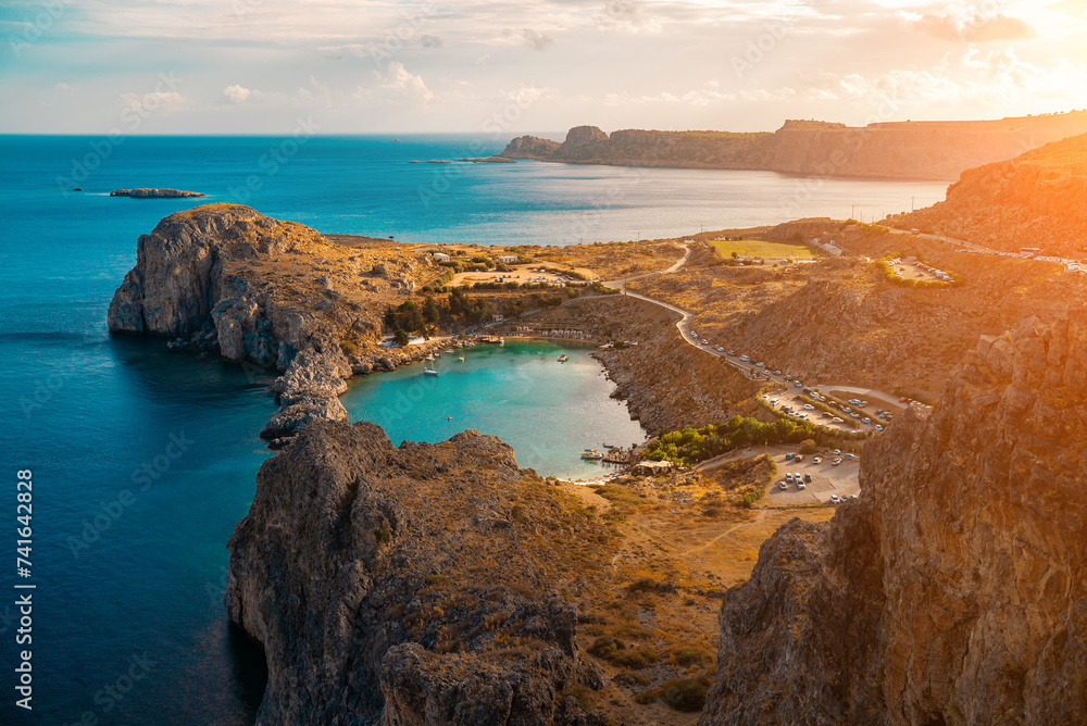 Aerial view on Saint Paul's bay in Lindos, Rhodes, Greece.