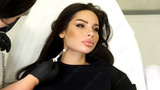 Close-up of a woman's face. A cosmetologist in medical gloves pierces a woman's face with a syringe in a cosmetologist's office. Beauty injections. Cosmetic injections