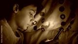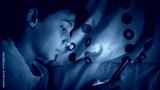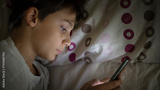 Boy using smartphone from bed at night before sleeping. Concept of children using mobile phones on social networks and their dangers without parental control at night from their room