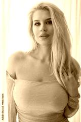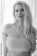 Beautiful blonde woman in a short dress.