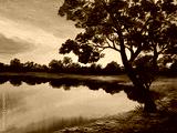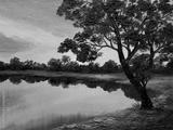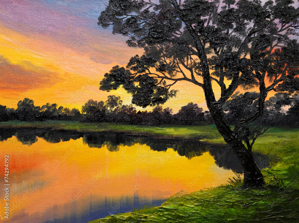 oil painting on canvas - tree near the lake