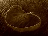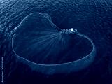Drone view a fishing boat is netting anchovies on Nha Trang sea - Nha Trang city, Khanh Hoa province, central Vietnam