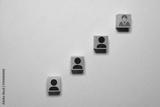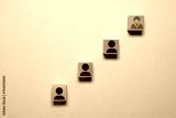 Business concept of Human resource and talent management and recruitment. Hand of men putting wood cube block on top staircase.