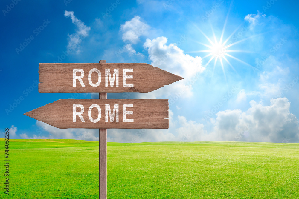 Rome road sign. Welcome to Rome, Italy. Entering Rome. All ways leads to rome concept.