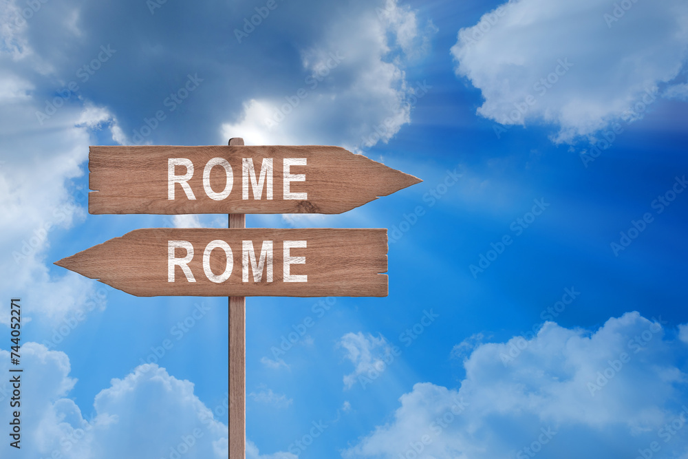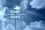 Rome road sign. Welcome to Rome, Italy. Entering Rome. All ways leads to rome concept.