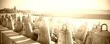 Retro filtered photo of concrete block breakwater in Kolobrzeg, Poland.
