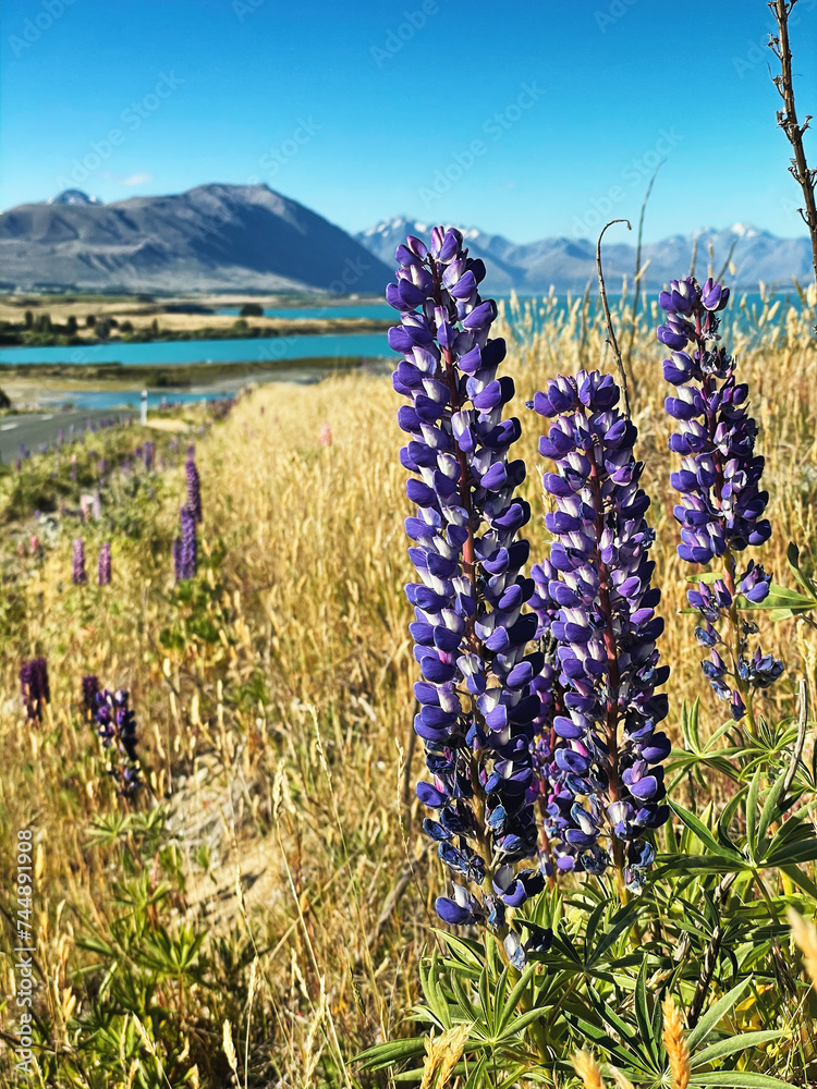 Capture the vibrant beauty of New Zealand's lupins flowers blooming in a scenic meadow during spring, a colorful display of nature's beauty