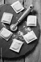 Homemade italian ravioli on the wooden table