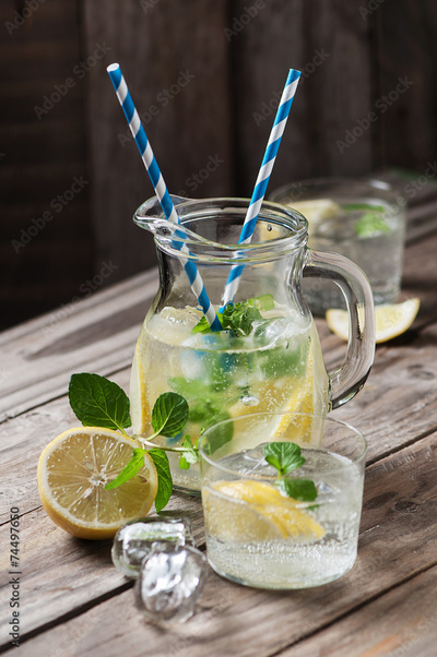 Lemonade with fresh lemon and mint