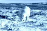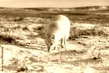 Arctic fox (Vulpes Lagopus) in wilde tundra. Arctic fox on the beach.