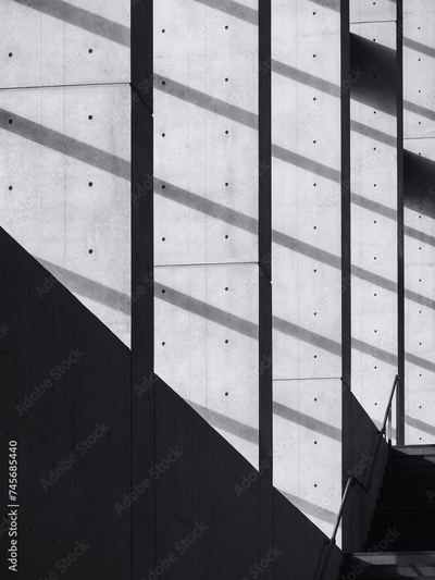 Concrete columns cement wall Shadow lighting contrast Architecture details