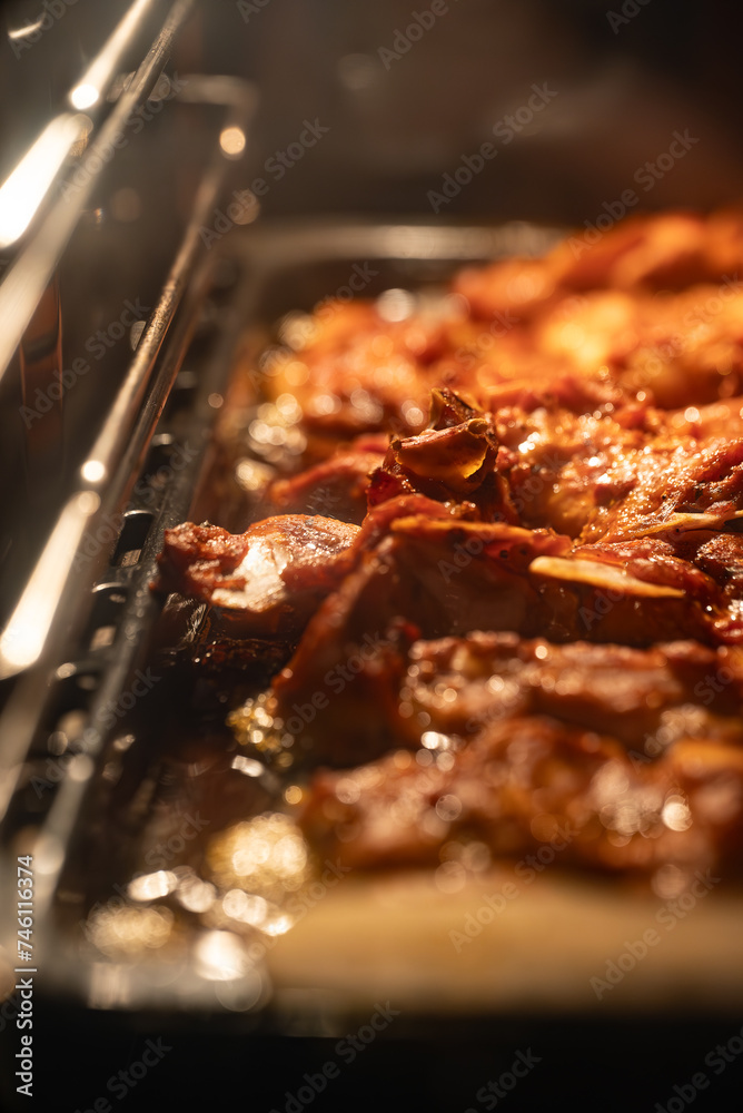 Pork ribs are cooked in the oven.