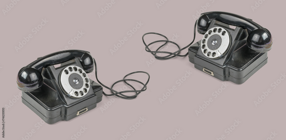 Two retro phones on a light background.