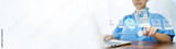Doctor working with laptop computer Hospital background. Doctor insurance healthcare concept.