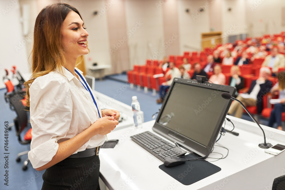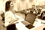 Speaker giving speech at business conference in convention center