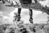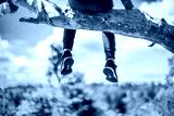 Child climbing Playing Outdoors in a Tree Having Fun in Nature, Boy Scout concept