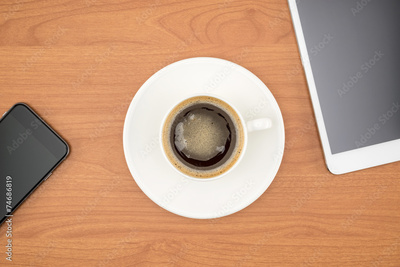 Office desk,Working on a Wooden Table with tablet