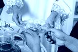 Female Hand Serve Plate of Food with Ketupat and Opor