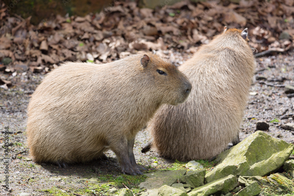 Capybara (Hydrochoerus hydrochaeris) portrait. Giant cavy rodent native to South America.