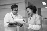 American doctor working in hospital, Team doctor discussion report on folder medicine, profession and healthcare concept