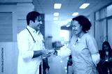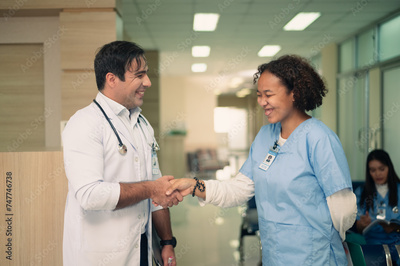 American doctor working in hospital, Team doctor discussion report on folder medicine, profession and healthcare concept